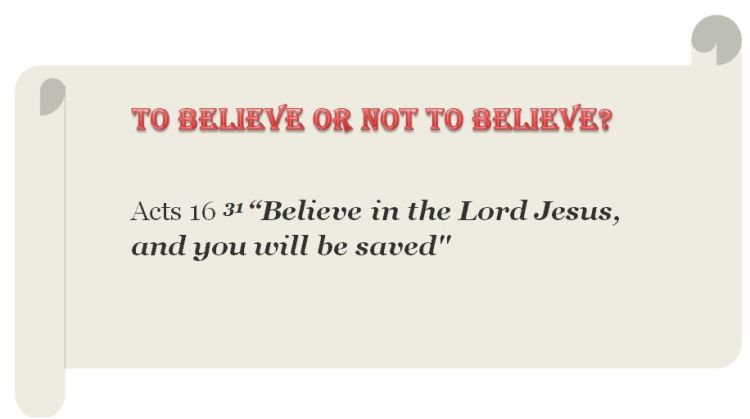 One of the most simple/difficult things we are told to do is believe. Simple because we just need to believe; difficult because as humans if we do not see it we do not believe it. This holds more true in the time we live. As we get to know Jesus more it will become so evident that he is real that we question how it could be called faith.  Quite simply you have no doubt because of what he has done in your life! Acts 16 31 “Believe in the Lord Jesus, and you will be saved”