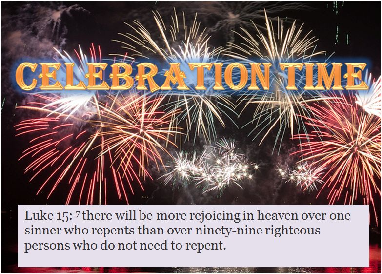 Luke 15: 7 there will be more rejoicing in heaven over one sinner who repents than over ninety-nine righteous persons who do not need to repent. Discover more from Drink of Jesus Subscribe to get the latest posts sent to your email. Type your email… Subscribe Share this: Click to share on X (Opens in new window) X Click to share on Facebook (Opens in new window) Facebook Click to share on Reddit (Opens in new window) Reddit Click to share on Tumblr (Opens in new window) Tumblr Click to share on Pinterest (Opens in new window) Pinterest Like Loading... Related