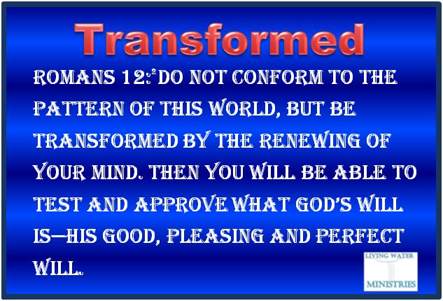 Romans 12:2 Do not conform to the pattern of this world, but be transformed by the renewing of your mind. Then you will be able to test and approve what God’s will is—his good, pleasing and perfect will.