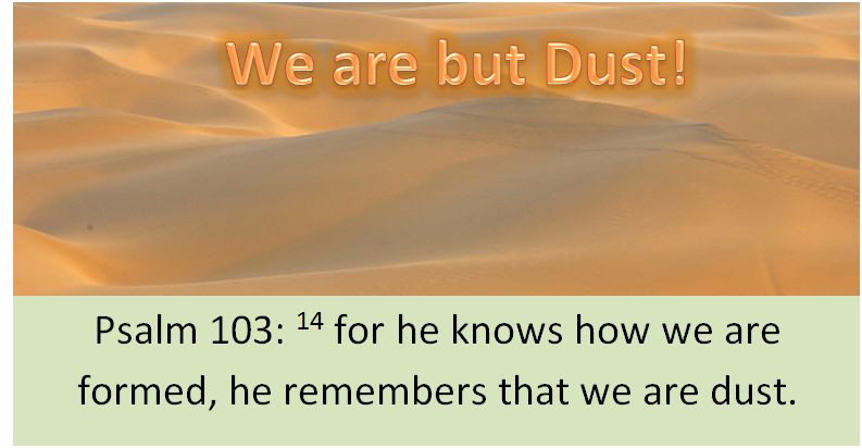 Psalm 103: 14 for he knows how we are formed, he remembers that we are dust.