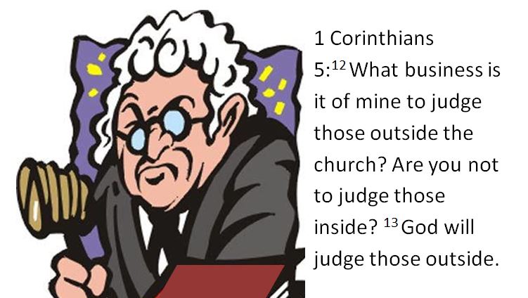 1 Corinthians 5:12 What business is it of mine to judge those outside the church? Are you not to judge those inside? 13 God will judge those outside.