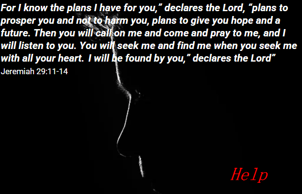 - Here is what God says Jeremiah 29:11-14 For I know the plans I have for you,” declares the Lord, “plans to prosper you and not to harm you, plans to give you hope and a future. Then you will call on me and come and pray to me, and I will listen to you. You will seek me and find me when you seek me with all your heart. I will be found by you,” declares the Lord”.