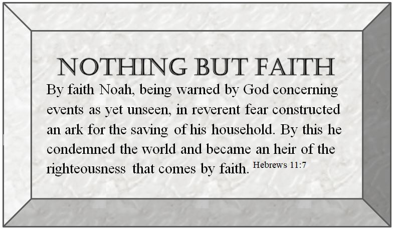 By faith Noah, being warned by God concerning events as yet unseen, in reverent fear constructed an ark for the saving of his household. By this he condemned the world and became an heir of the righteousness that comes by faith. Hebrews 11:7