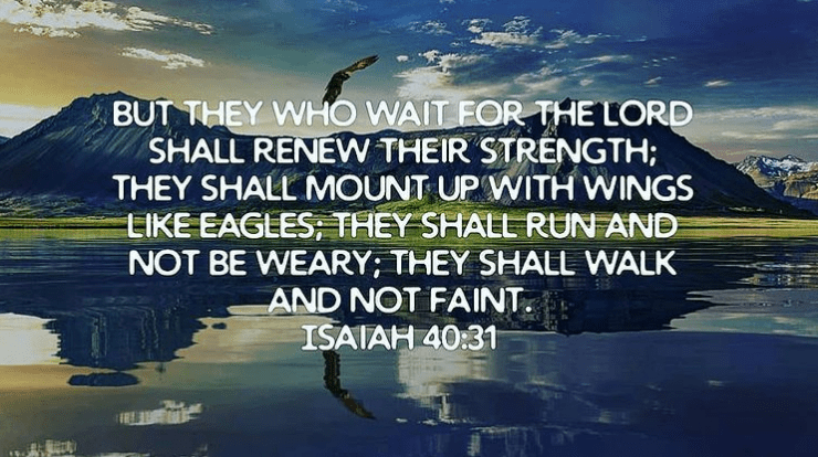 But they who wait for the Lord shall renew their strength; they shall mount up with wings like eagles; they shall run and not be weary; they shall walk and not faint. Isaiah 40:31 ESV
