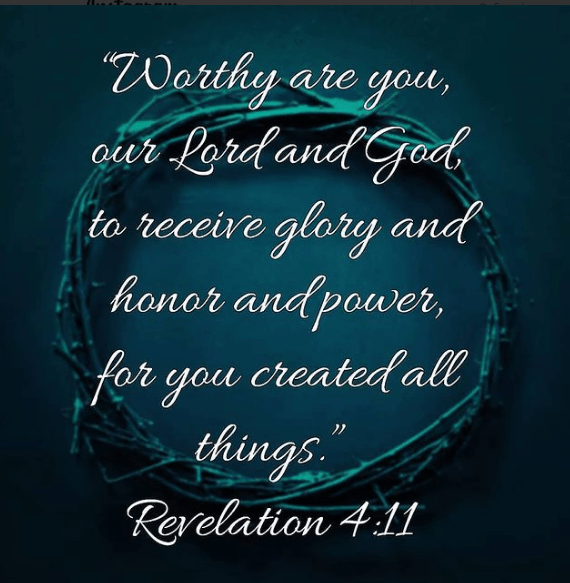 “Worthy are you, our Lord and God, to receive glory and honor and power, for you created all things, and by your will they existed and were created.”