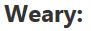 1. Having the strength much exhausted by toil or violent exertion; tired; fatigued. [It should be observed however that this word expresses less than tired, particularly when applied to a beast; as a tired horse. It is followed by of, before the cause of fatigue; as, to be weary of marching; to be weary of reaping; to be weary of study.]
