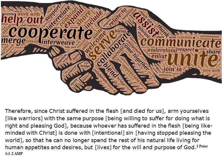 Therefore, since Christ suffered in the flesh [and died for us], arm yourselves [like warriors] with the same purpose [being willing to suffer for doing what is right and pleasing God], because whoever has suffered in the flesh [being like-minded with Christ] is done with [intentional] sin [having stopped pleasing the world], so that he can no longer spend the rest of his natural life living for human appetites and desires, but [lives] for the will and purpose of God.1 Peter 4:1-2 AMP