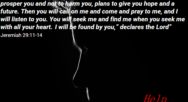 - Here is what God says Jeremiah 29:11-14 For I know the plans I have for you,” declares the Lord, “plans to prosper you and not to harm you, plans to give you hope and a future. Then you will call on me and come and pray to me, and I will listen to you. You will seek me and find me when you seek me with all your heart. I will be found by you,” declares the Lord”.